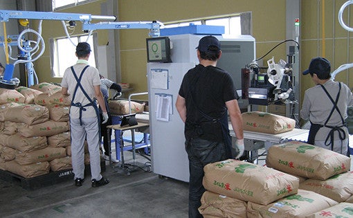 Tanji said that, within four months, a new screening machine exclusively for rice was developed. The machines are extremely expensive, at approximately ¥20 million each. They are also extremely efficient, able to screen two or more 30kg bags of rice for radioactive material in one minute.