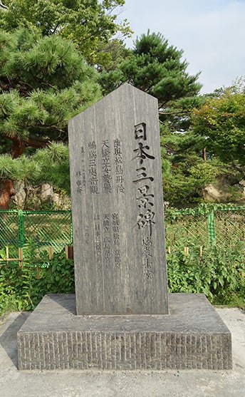 A stone monument to the Three Views of Japan. Amanohashidate and Miyajima have identical monuments.