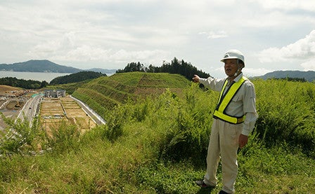 To the south of the breakwater, halfway down a mountain in Imaizumi Ward, I met with Nobutaka Sasaki, a man engaging in the construction project.