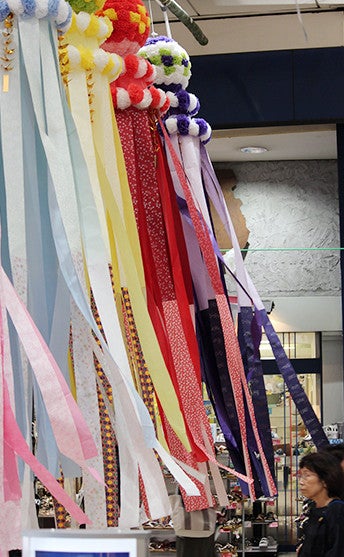 Even if a typhoon brings rain showers, it is still just right for enjoying the washi paper of the Tanabata decorations.