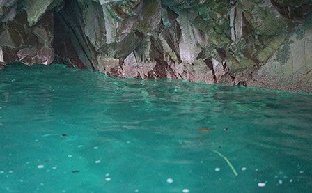 It was cloudy on the day we went, but the water inside the Blue Cavern was not affected.