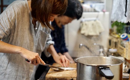 She cooks together with the guests, and in the evenings, engages in friendly chat while eating and drinking together.