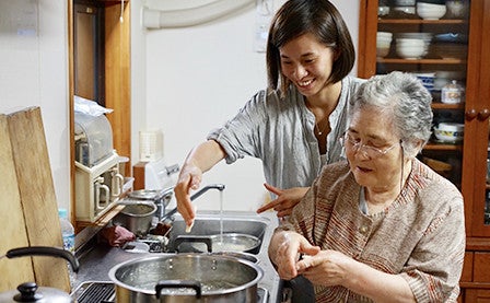 Then, she made flour dumplings to go in soup together with the grandmother.