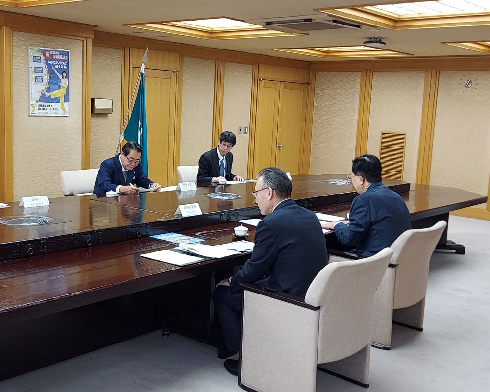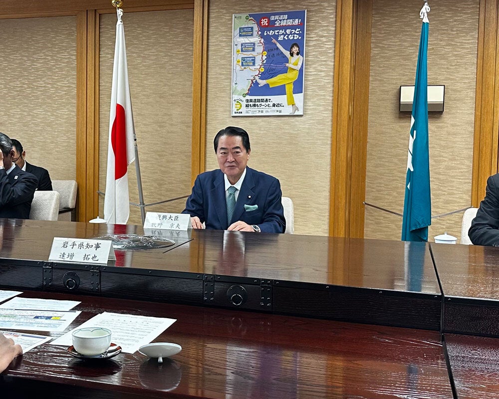 牧野復興大臣は、就任後初めて岩手県盛岡市を訪問し、岩手県庁にて達増知事への就任の挨拶と意見交換を行いました。