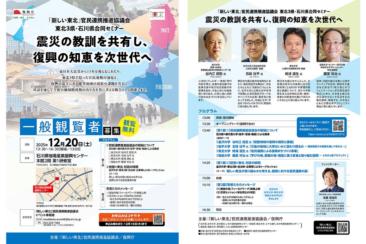 令和7年度 「新しい東北」東北3県・石川県合同セミナー「つながりのその先へ ~震災の教訓を共有し、復興の知恵を次世代へ~」 開催のお知らせ