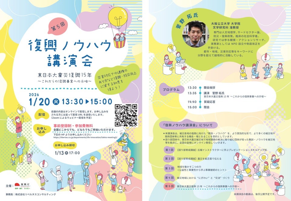 令和7年度 「新しい東北」復興ノウハウ講演会 開催のお知らせ (第5回)「東日本大震災復興15年~これからの復興事業への示唆~」